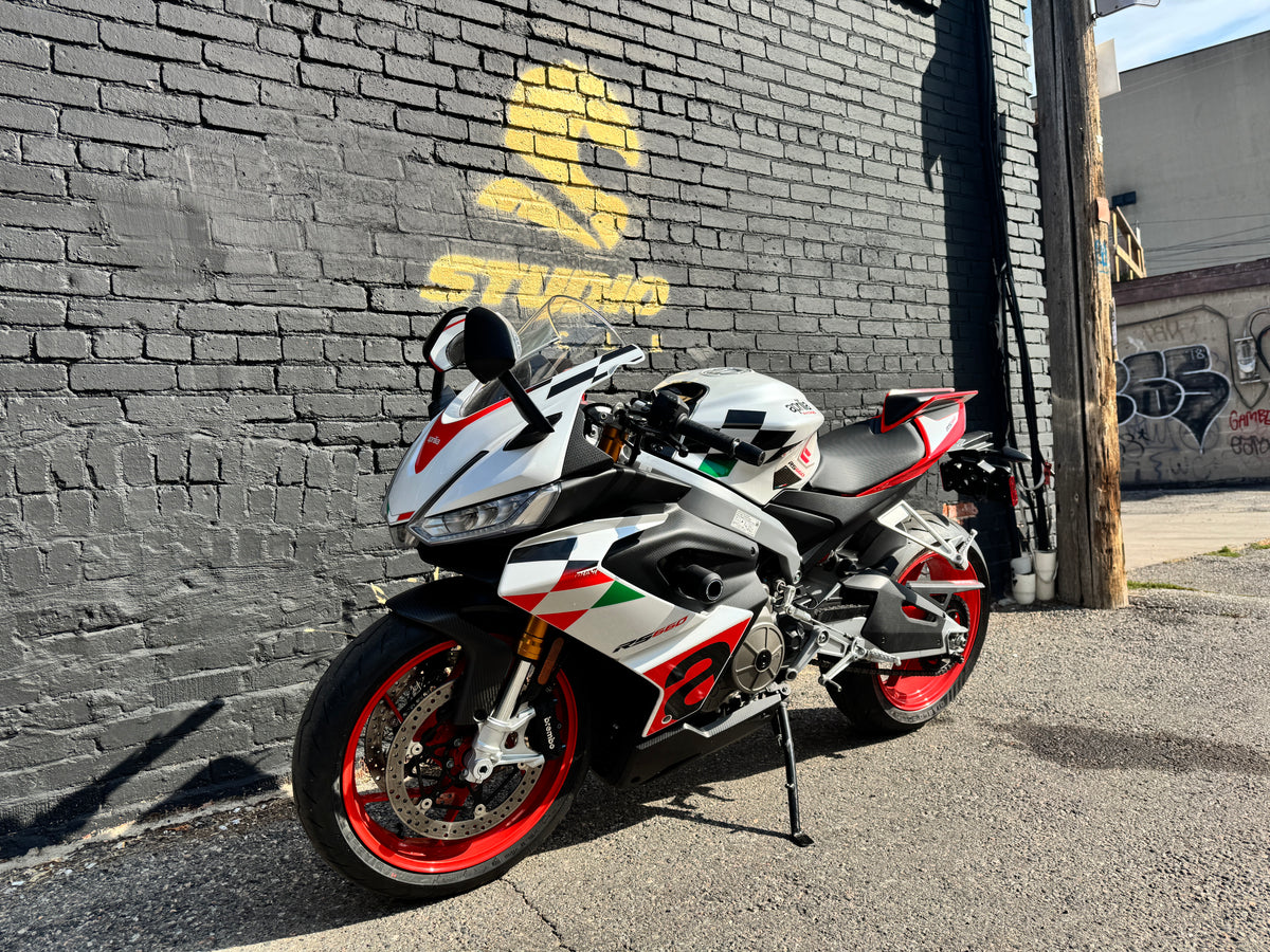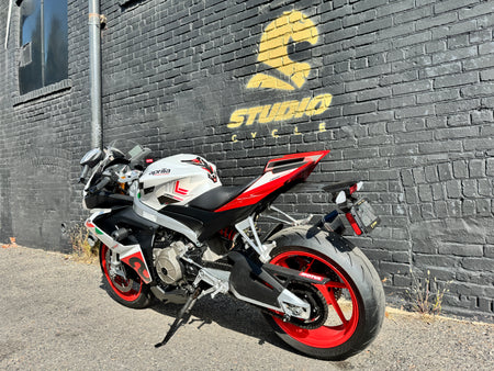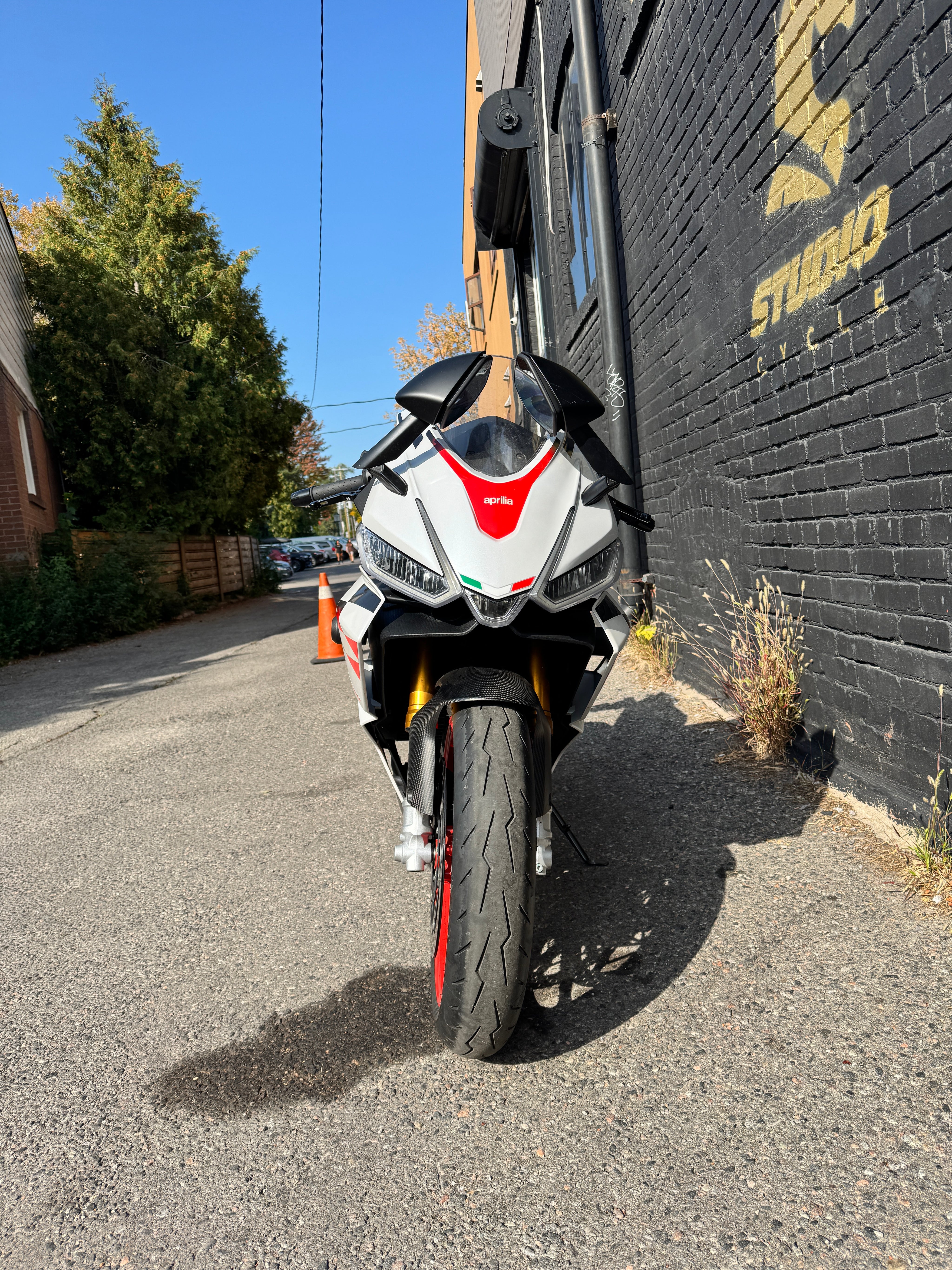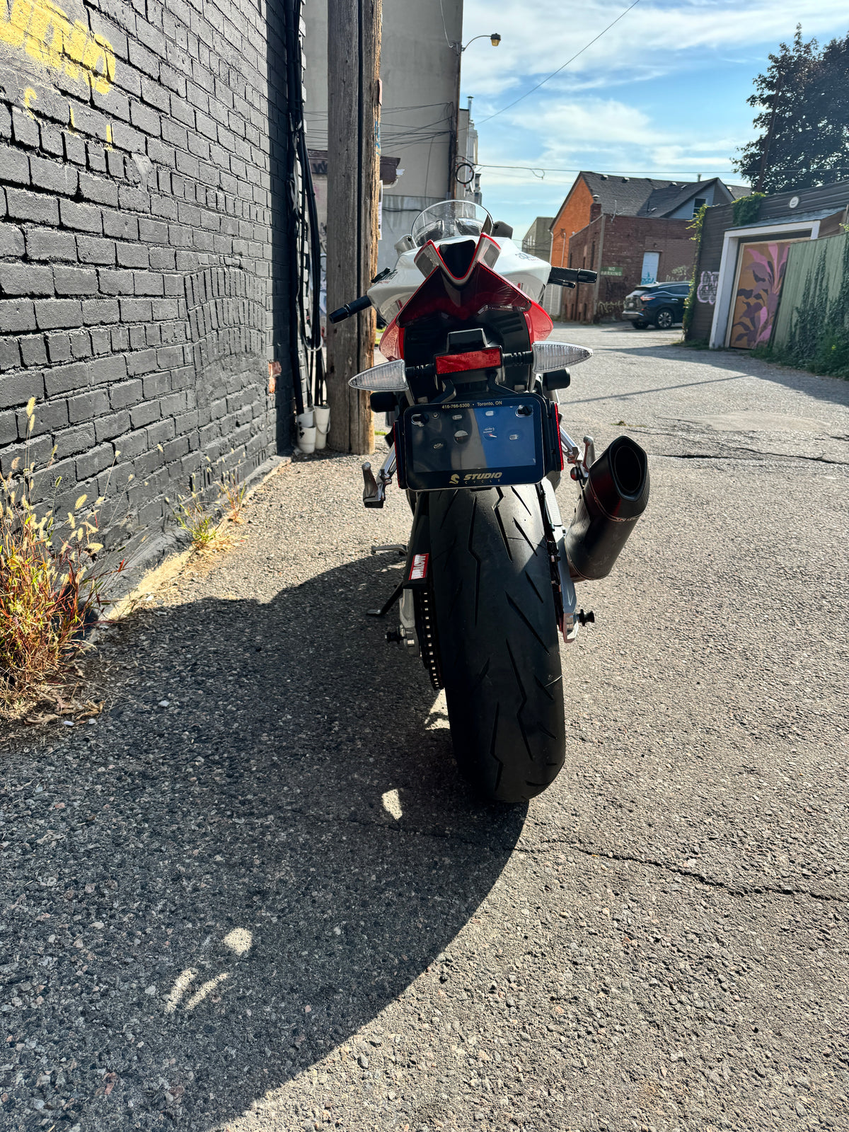 This Extrema comes with Evo-Tech frame sliders, CNC shorty racing levers, front tank protector and side tank protectors. Brand new Pirelli Rosso IV's front and rear and full service done at 8,942 km. This unit also includes a rear passenger seat and the rear seat cowl (shark-fin).