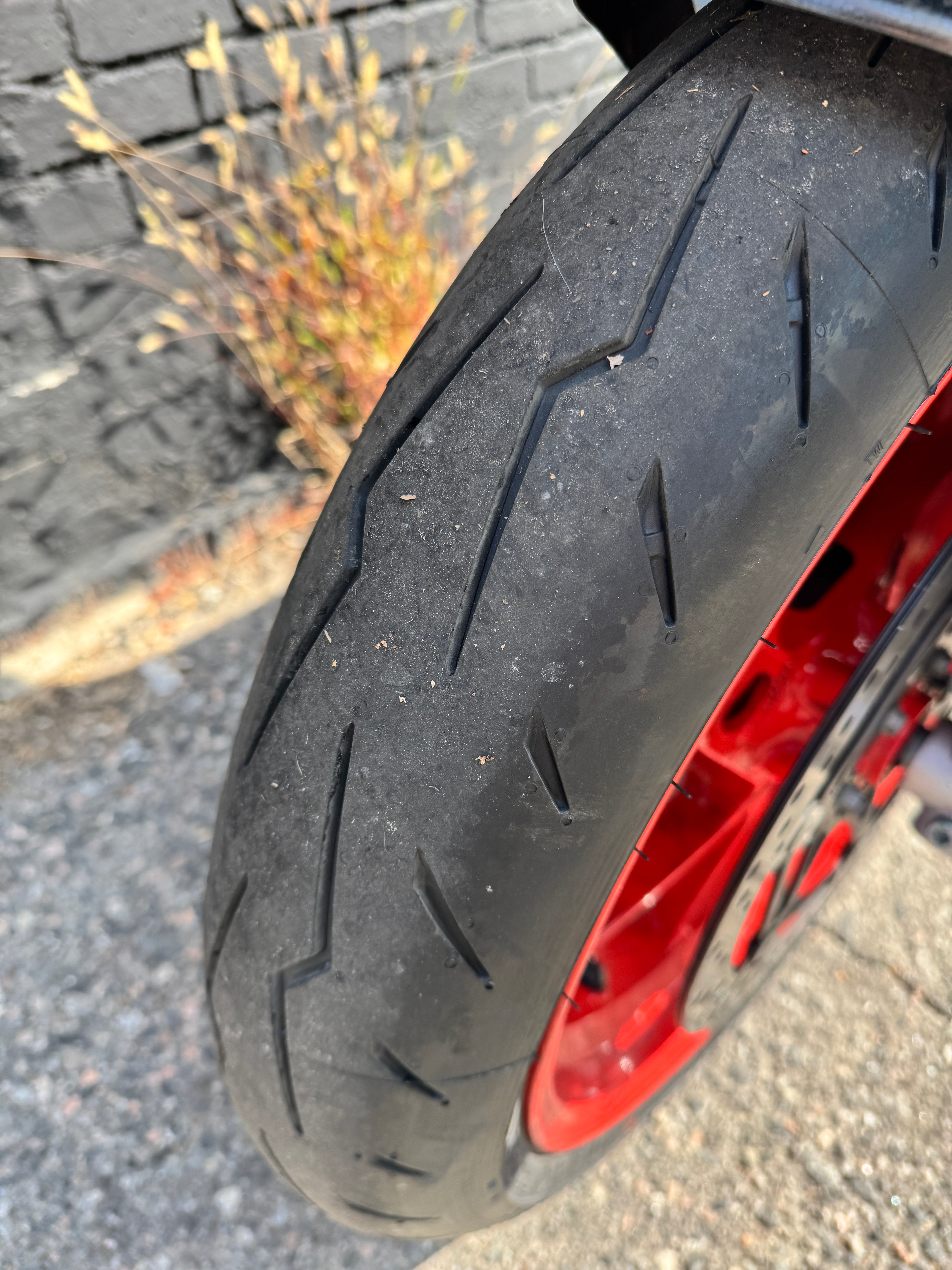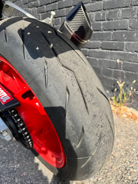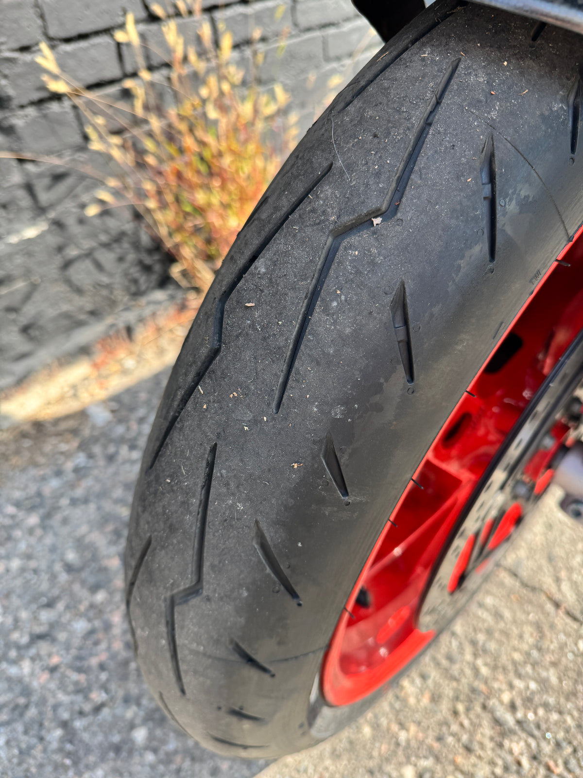 Tubeless Pirelli Diablo Supercorsa radials, front: 120/70 ZR 17 rear: 180/55 ZR 17 (alternatively 180/60 ZR17) |