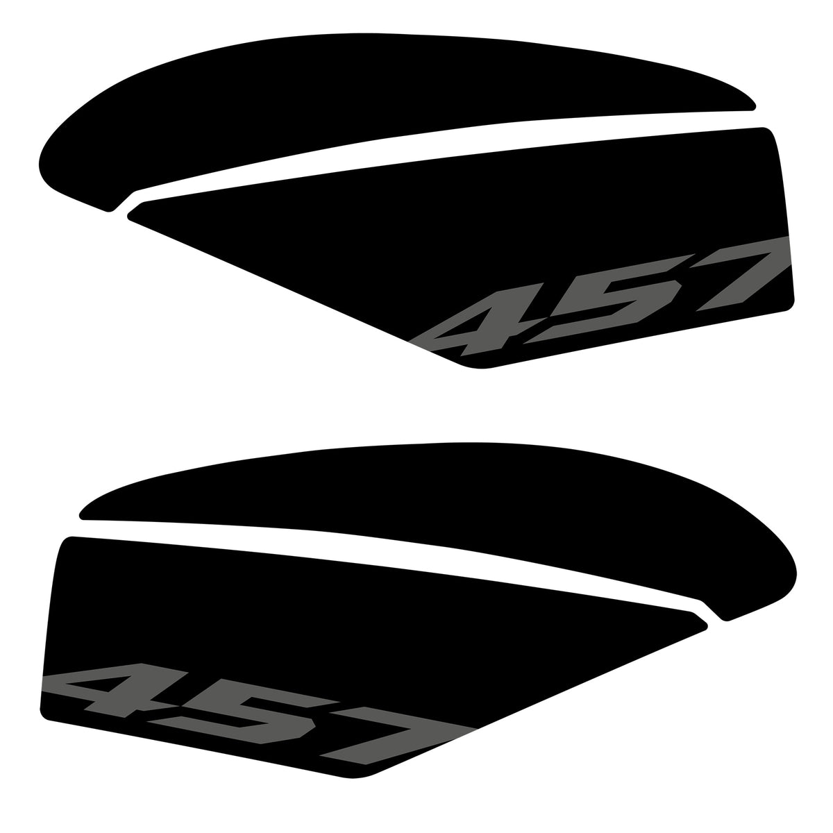 Made by our Style Center to match the graphics of the tank, they are made of adhesive resin. Easy to apply, they protect the sides of the fuel tank from rubbing.