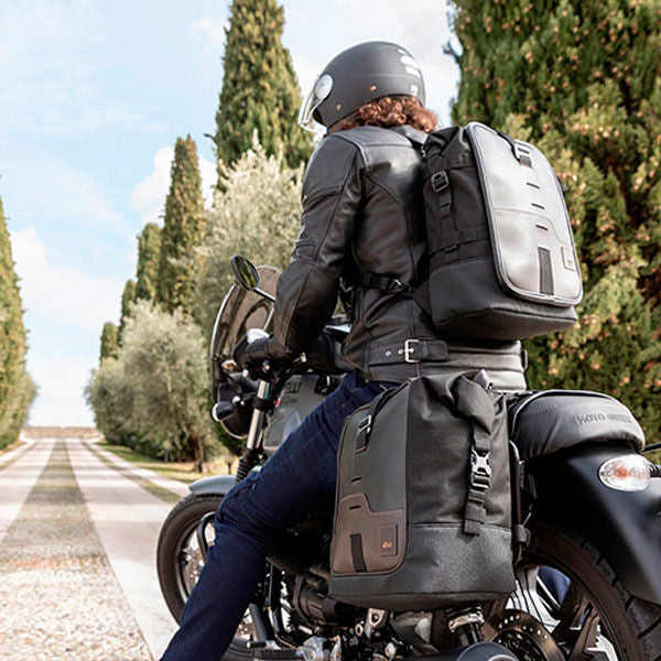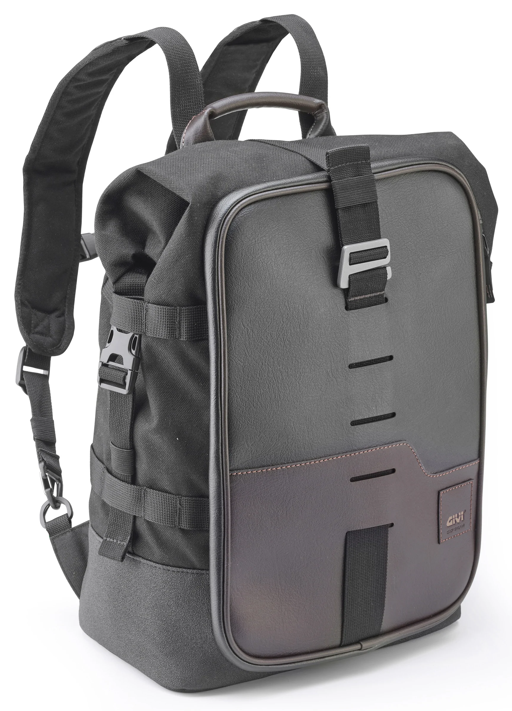 Designed with cafe racers in mind, the Corium Collection from Givi features timeless styling with coarse textured fabrics, simple lines and synthetic leather paneling. Rucksack which can be used as a saddle bag or backpack, 18L.