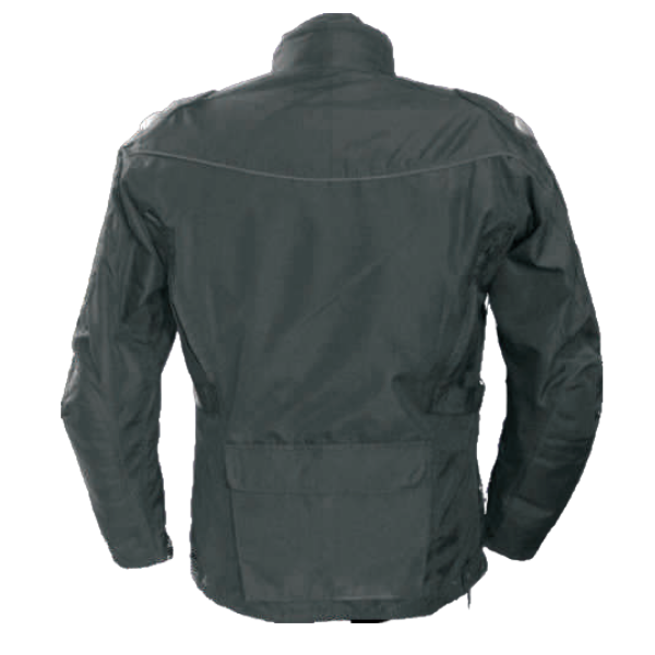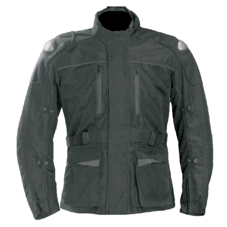 3 layer all weather jacket with a polyester kordura waterproof outer shell, removable zippered laser lining, and additional thermal inner lining. Ventilation system and front & back; waist adjustable belt & adjustable arm straps for improved fit. YKK zipper, titanium protectors on outer shoulder, CE approved shoulder, elbow and soft back protector, and reflective piping for added visibility. Large front box pockets, and extra large rear dorsal pocket. All at a price that can't be beat!