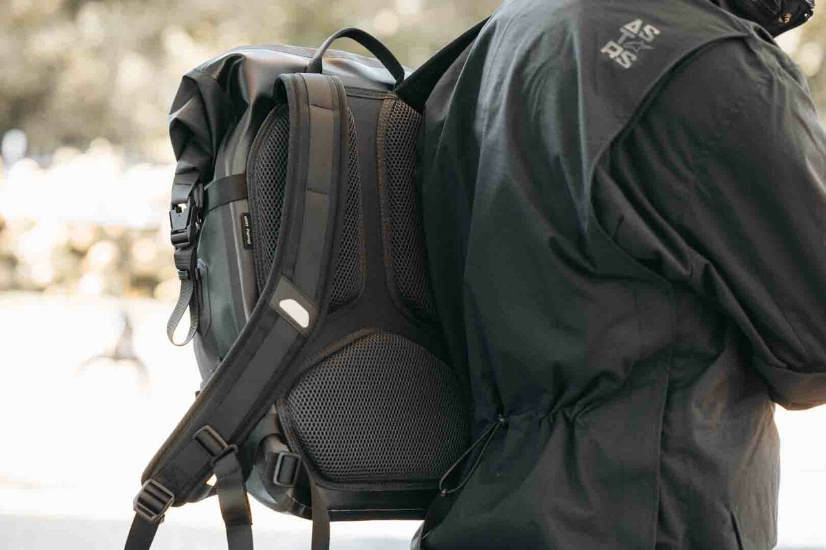 - Waterproof main compartment made of TPU material with roll-top closure