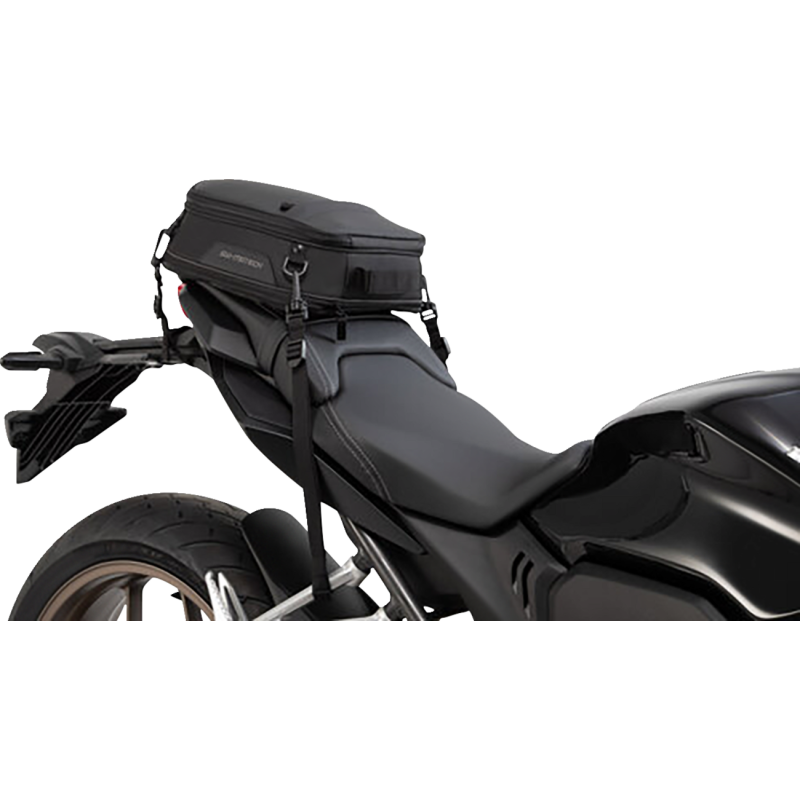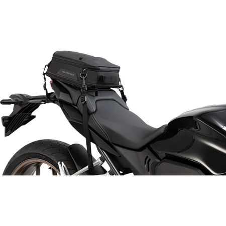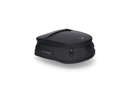 Ideal for small and sporty bikes: The volume of the ION S tail bag can be expanded via zipper from 7 to 15 l and therefore offers enough storage for drinks, a change of clothes, and other necessities for day trips and short rides. The compact bag can be lashed onto riveted D-rings with the included loop straps. Two straps with hook-and-loop closure, along with a slot on the underside, enable fast and secure attachment to a seat or rack. Reinforced sides, a padded lid and cinch straps guarantee a stable, secure fit even when you're riding at speed.Things stowed in the outer pocket or mesh compartment in the inside of the lid are particularly close at hand. A carrying handle makes the ION tail bag a practical travel companion even away from the street.